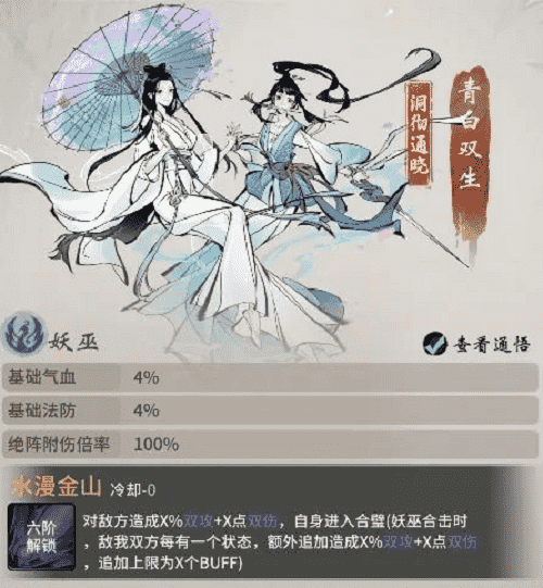 西湖踏春,,,未曾想竟卷入到青白蛇故事中。。青蛇与白蛇本是修道有成的小妖,,,两人在西湖边上开了间医馆,,,济世救民,,,不料沾惹人世因果,,遭高僧误解。。。白蛇被镇压于雷峰塔下,,,,侥幸逃脱的青蛇则在三界奔波,,,只为早日寻得解救白蛇之法。。如今千年已过,,,,高僧云游四海,,,,雷峰塔封印松动,,,而青蛇亦寻得强力古宝,,,意欲趁此机会解救出姐姐……若仙友有幸与青白双生结识,,,,即可习得其绝技·水漫金山,,对敌方造成双攻伤害,,,于修炼大有助益。。。