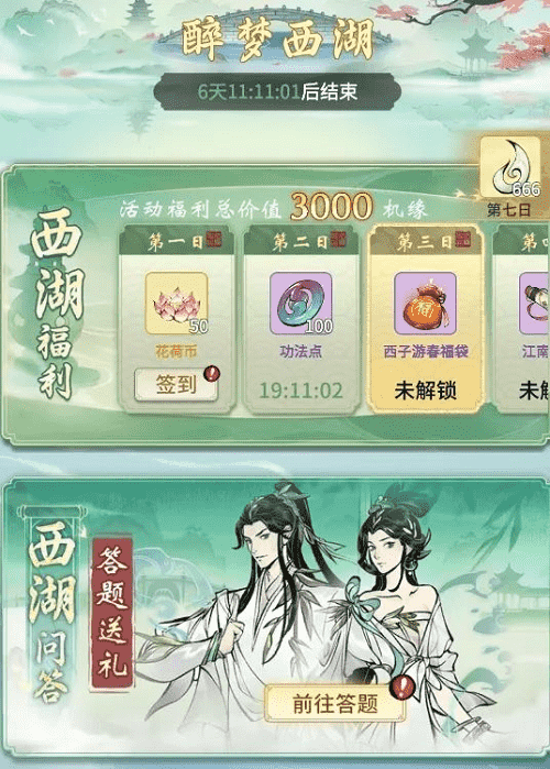 烟雨江南,,,西湖三月,,,,宛若人间仙境,,,正是如此,,,,修真界方才与之连通,,,共享两处风光。。。此番《一念逍遥》联动西湖景区,,,西湖十景被“搬”进游戏中,,,仙友在游春过程中,,,即可观赏到西湖奇景。。。每日前往签到、、、参与游湖活动、、、进行莲鲤祈愿,,,皆可获得奖励馈赠,,,在这烂漫春日里,,,,赏景、、、修行两不相误。。。